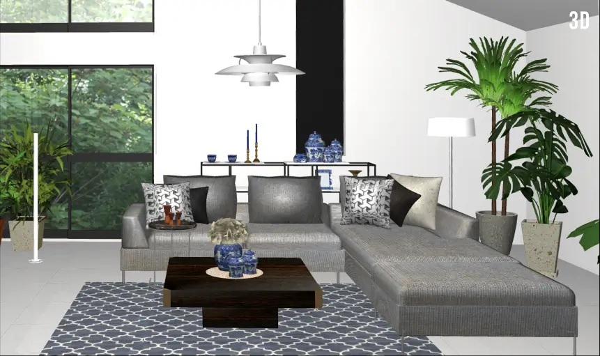 下の画像のように、3Dシミュレーションで部屋を再現して、アルモニアの家具を自由にレイアウトしてみることができますよ。